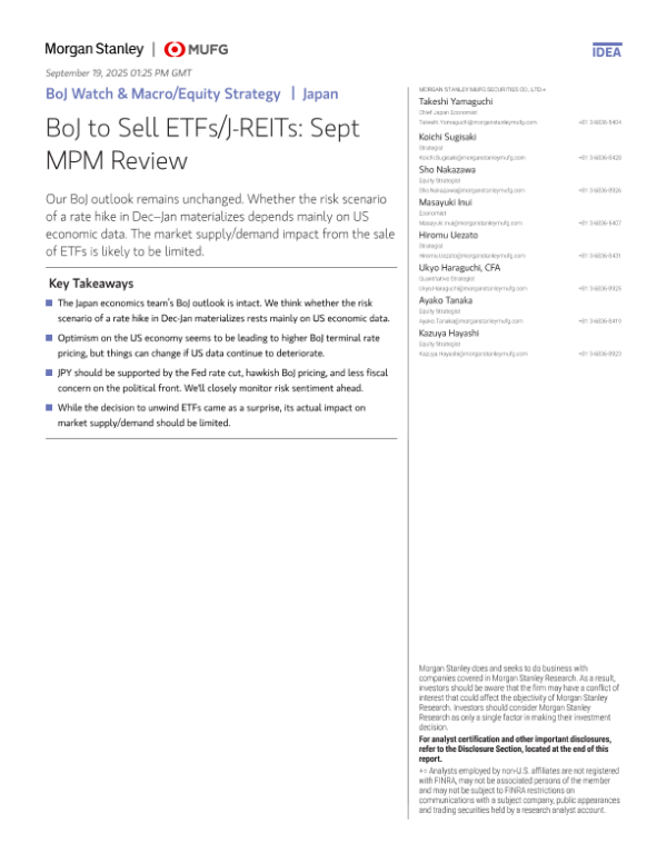 【MORGAN STANLEY MUFG SECURITIES CO.<D.】【202509】Boj Watch & Macro/Equity Strategy1Japan Boj to Sell ETFs/J-REITs Sept MPM Review-17页 证券期货研究报告