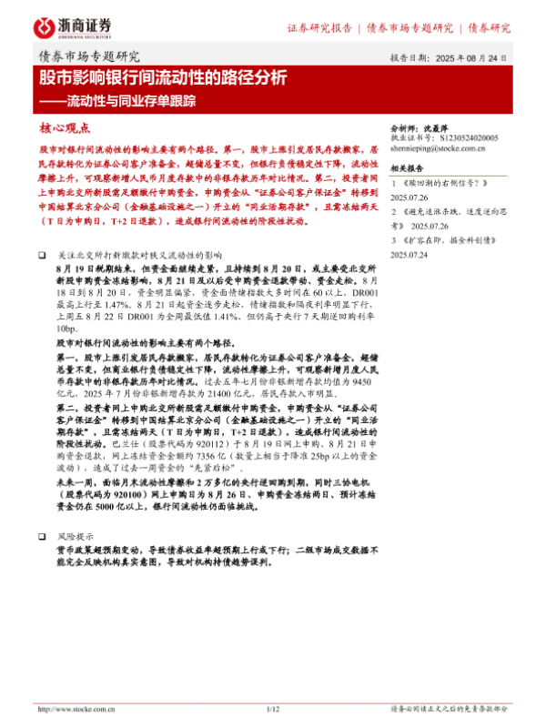【浙商证券】【202508】股市影响银行间流动性的路径分析——流动性与同业存单跟踪-12页 证券期货研究报告