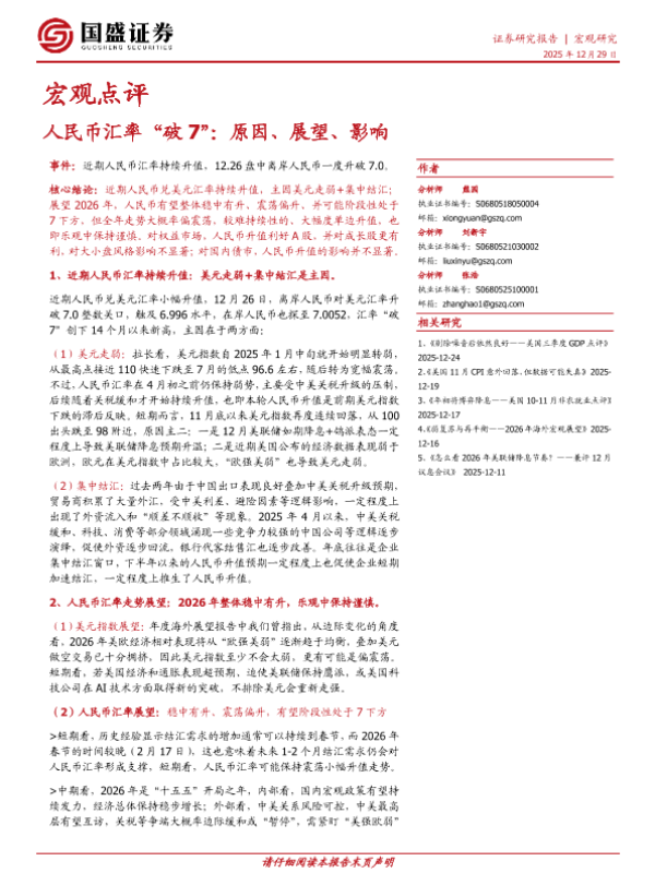 【国盛证券】【202512】人民币汇率“破 7”:原因、展望、影响-6页 证券期货研究报告