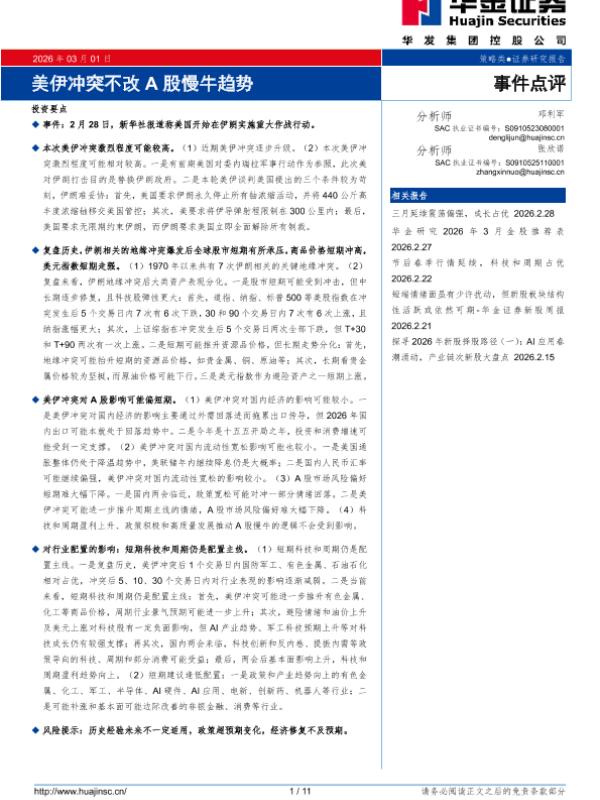 【华金证券】【202603】美伊冲突不改 A股慢牛趋势-11页 证券期货研究报告