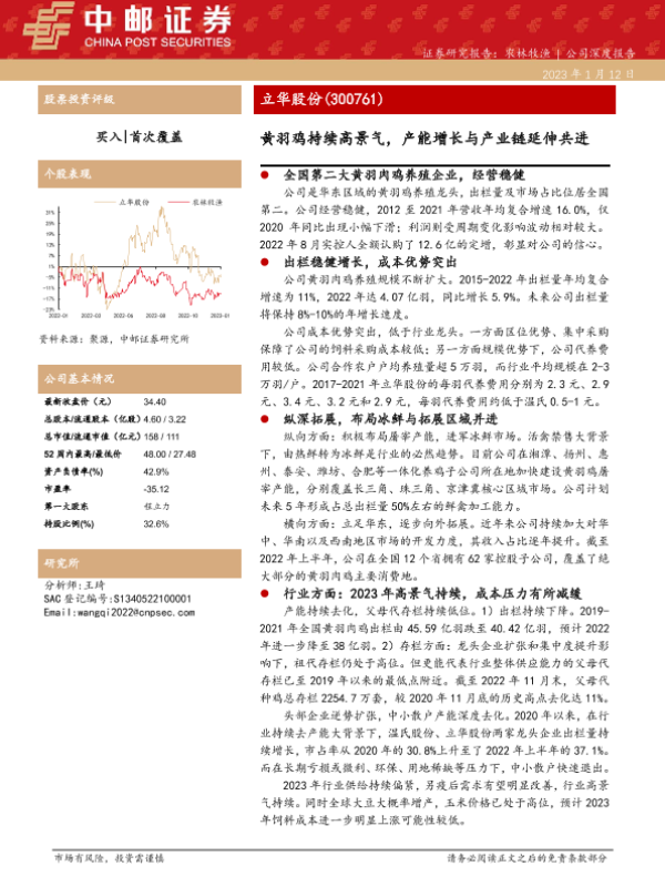 【中邮证券】【20230112】立华股份-300761.SZ-黄羽鸡持续高景气,产能增长与产业链延伸共进-27页 行业研究