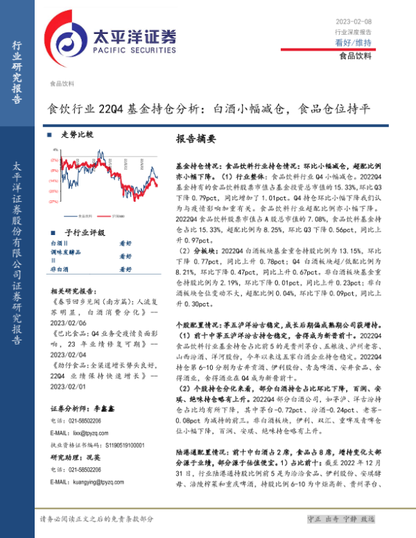 【太平洋证券】【20230208】食饮行业22Q4基金持仓分析:白酒小幅减仓,食品仓位持平-14页 行业研究