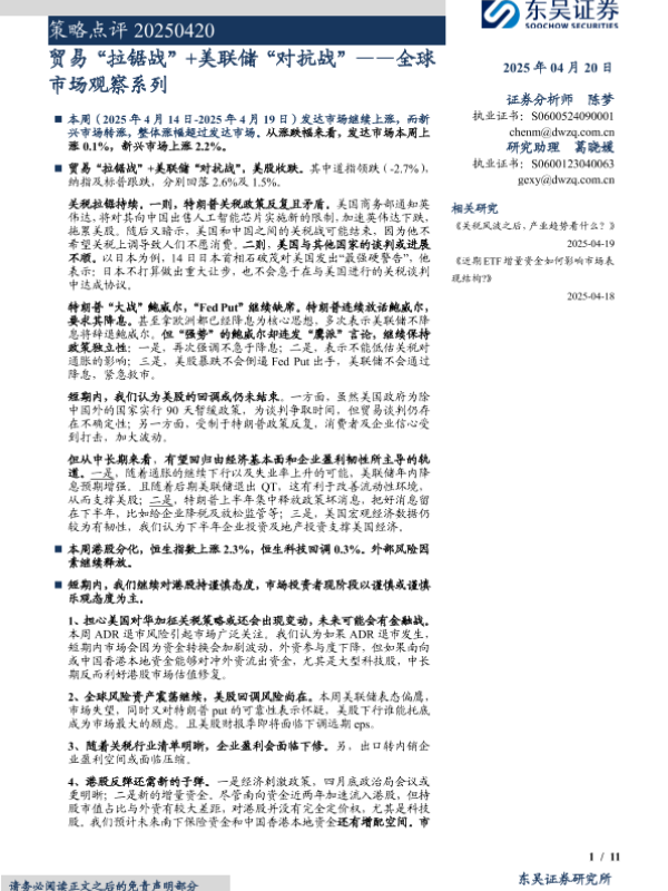 【东吴证券】【20250420】贸易“拉锯战”+美联储“对抗战”-11页 宏观策略