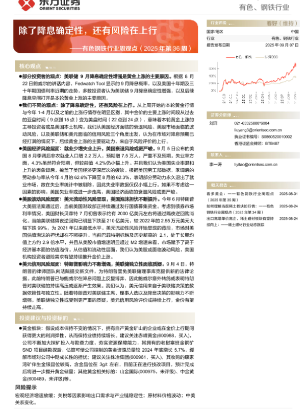 【东方证券】【202509】有色钢铁行业周报 ——除了降息确定性,还有风险在上行-25页 证券期货研究报告