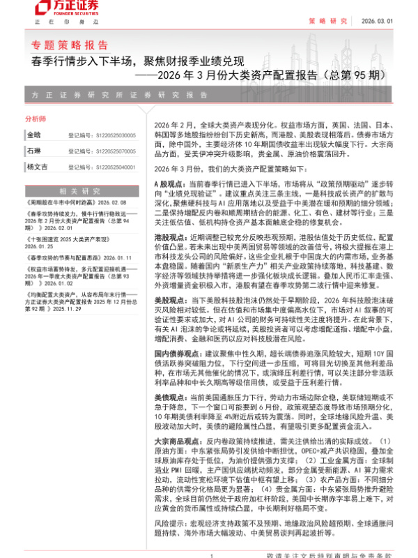 【方正证券】【202602】春季攻势持续发力,慢牛行情行稳致远——2026年2月份大类资产配置报告-30页 证券期货研究报告