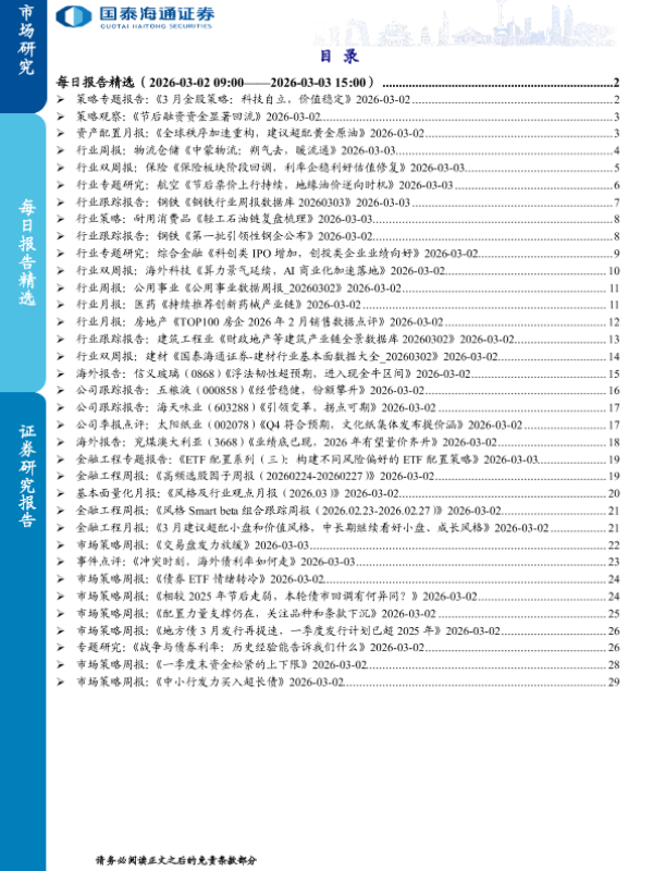 【国泰海通证券】【202603】2026年03月10日更新-【国泰海通】每日报告精选(+09:00——2026-03-03+15:00)-30页 证券期货研究报告