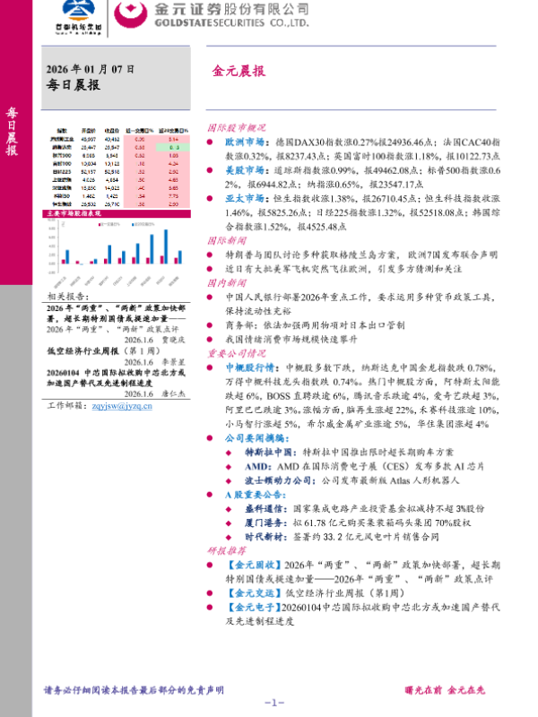 【金元证券】【202601】2026年 01月 07日每日晨报-7页 证券期货研究报告