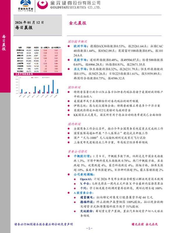 【金元证券】【202601】每日晨报-6页 证券期货研究报告