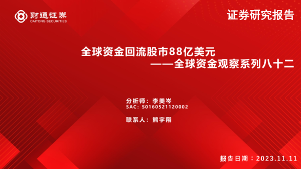 【财通证券】【20231111】全球资金观察系列八十二:全球资金回流股市88亿美元-30页 行业研究
