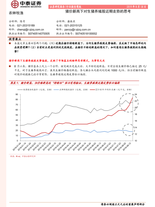 【中泰证券】【20190818】农林牧渔:猪价新高下对生猪养殖股近期走势的思考-11页 行业研究