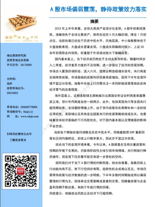 【瑞达期货】【20230704】A股市场偏弱震荡,静待政策效力落实-28页 行业研究