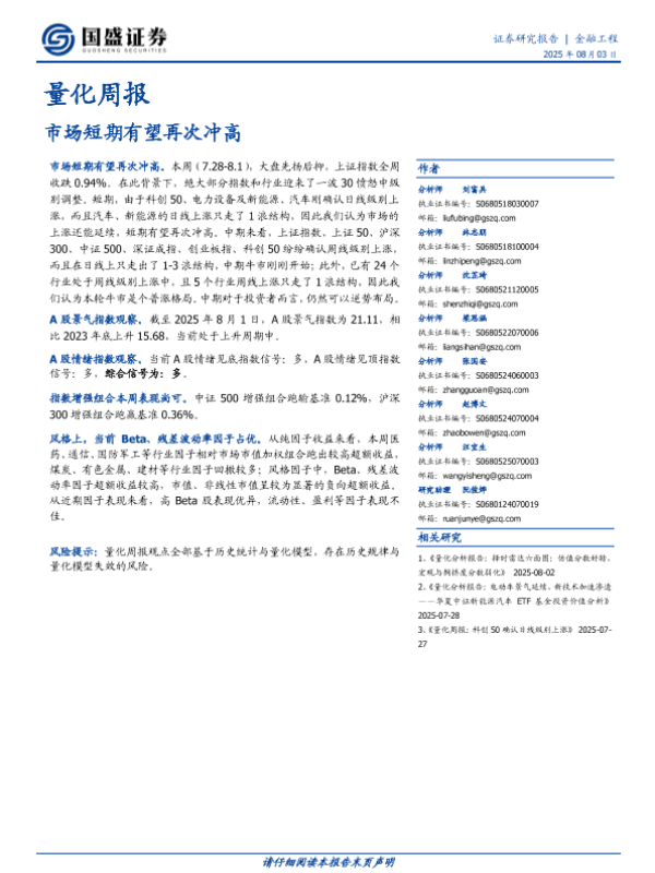 【国盛证券】【20250803】市场短期有望再次冲高-22页 证券期货研究报告