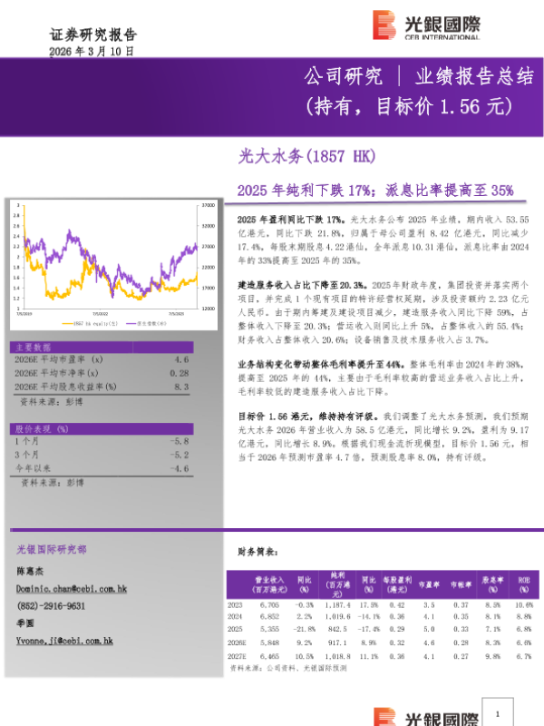 【光银国际】【202603】光大水务(1857 HK) 2025年纯利下跌17%;派息比率提高至35%-5页 证券期货研究报告