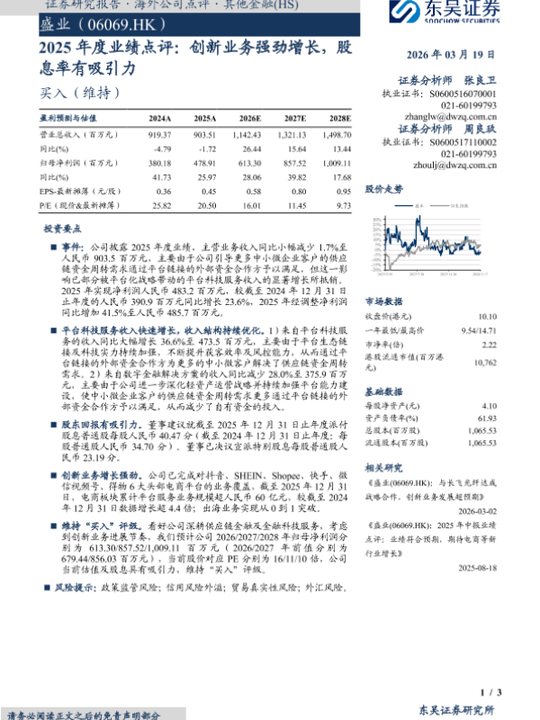 【东吴证券】【202603】2025年度业绩点评:创新业务强劲增长,股息率有吸引力-3页 证券期货研究报告