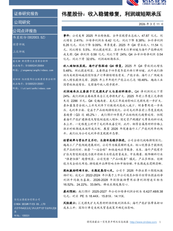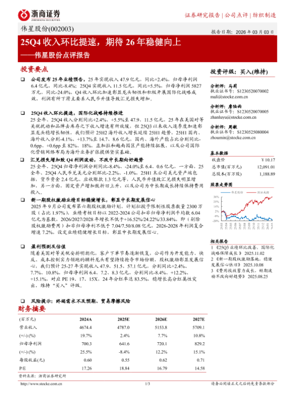 【浙商证券】【202603】25Q4收入环比提速,期待 26年稳健向上——伟星股份点评报告-3页 证券期货研究报告
