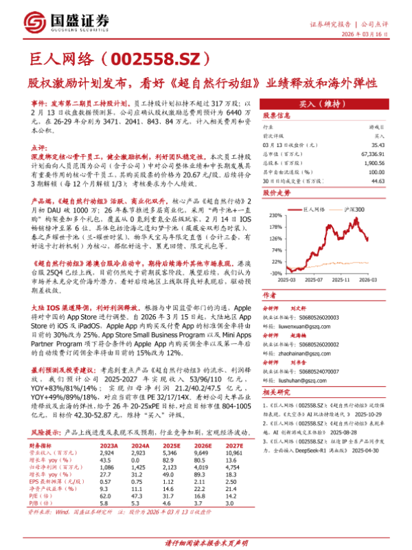 【国盛证券】【2026】股权激励计划发布,看好《超自然行动组》业绩释放和海外弹性-3页 证券期货研究报告