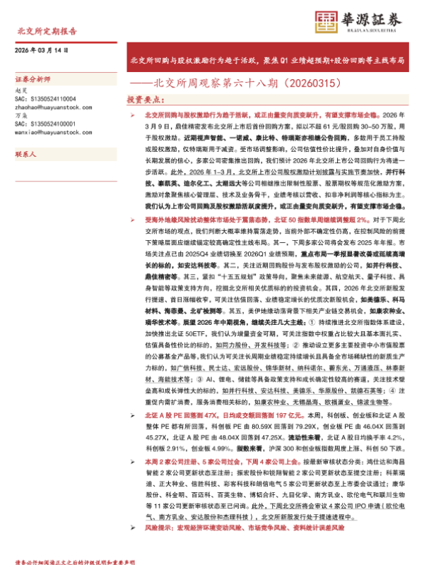 【华源证券】【202603】北交所回购与股权激励行为趋于活跃,聚焦Q1业绩超预期+股份回购等主线布局-11页 证券期货研究报告