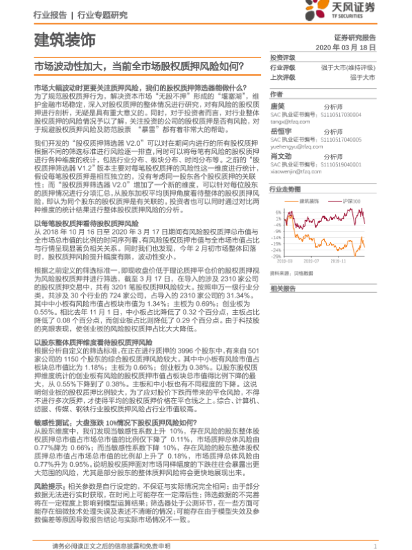 【天风证券】【20200318】市场波动性加大,当前全市场股权质押风险如何?-14页 行业研究