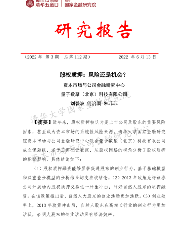 【清华大学国家金融研究院资本市场与公司金融研究中心】【20220613】股权质押:风险还是机会?-21页 行业研究
