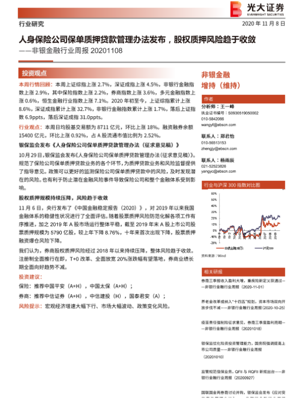 【光大证券】【20201108】人身保险公司保单质押贷款管理办法发布,股权质押风险趋于收敛-12页 行业研究