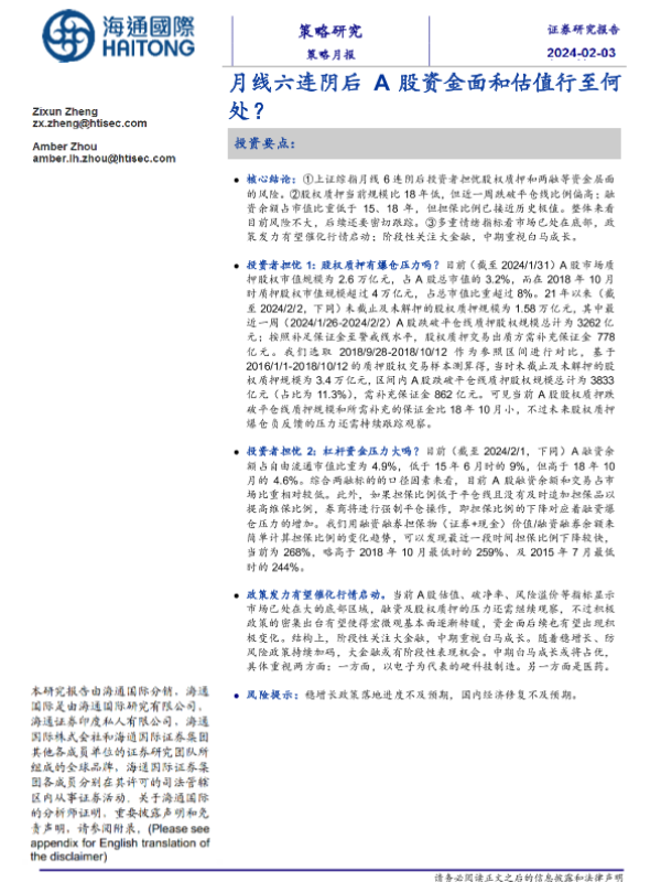 【海通国际】【20240203】策略月报:月线六连阴后A股资金面和估值行至何处?-15页 行业研究