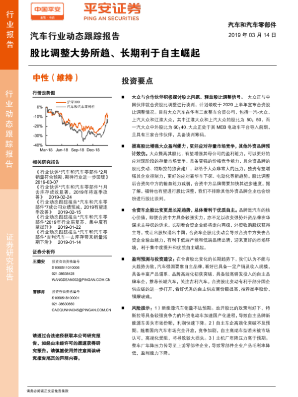 【平安证券】【20190314】汽车行业动态跟踪报告:股比调整大势所趋、长期利于自主崛起-6页 行业研究