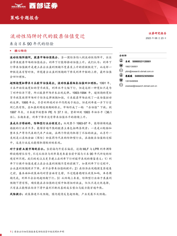 【西部证券】【20230623】来自日本90年代的经验:流动性陷阱时代的股票估值变迁-21页 行业研究