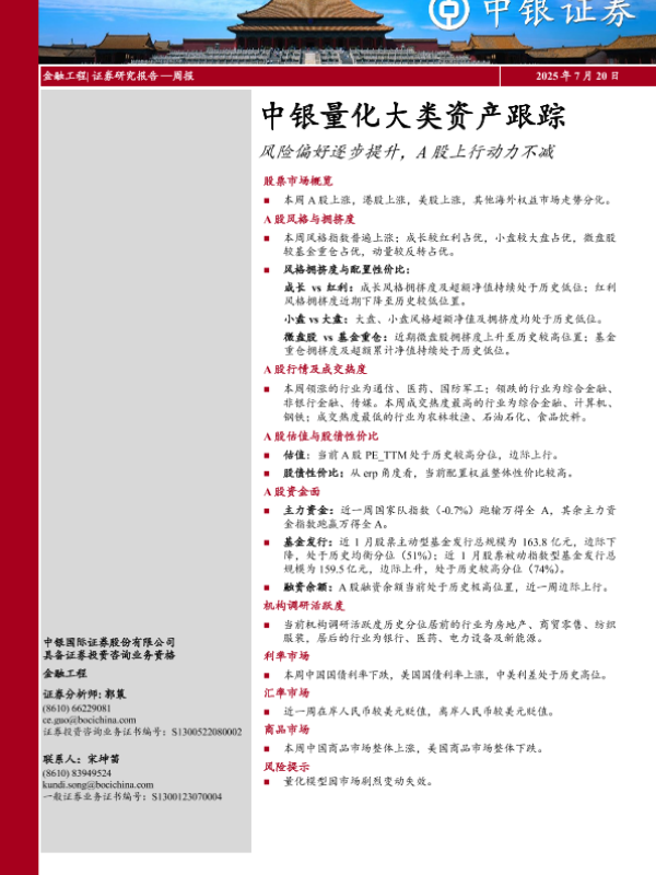 【中银证券】【20250720】中银量化大类资产跟踪:风险偏好逐步提升,A股上行动力不减-30页 证券期货研究报告