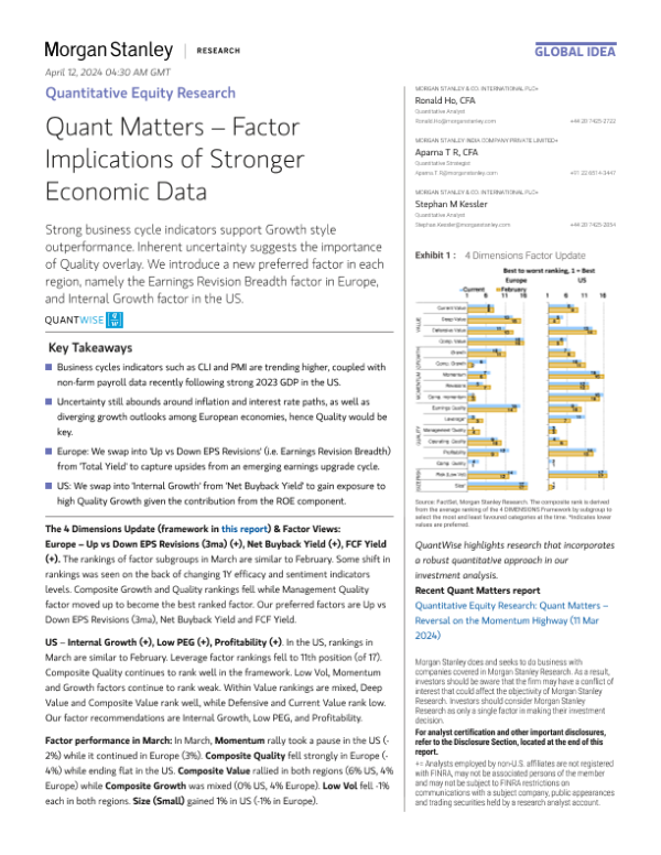 【Morgan Stanley】【20240311】Quant Matters – Factor Implications of Stronger Economic Data-51页 行业研究