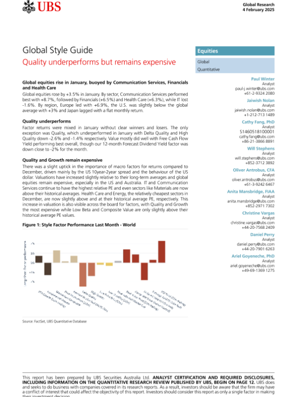 【UBS Securities Australia Ltd.】【20250204】Global Style Guide-16页 行业研究