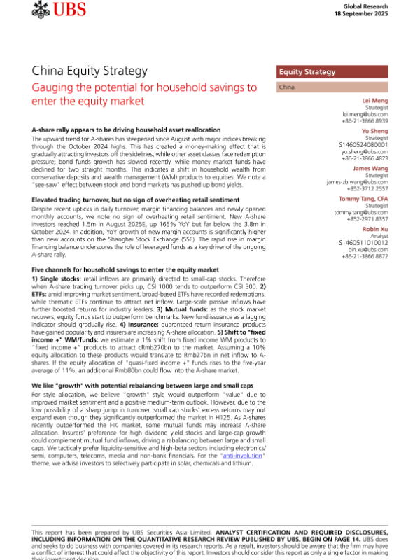【UBS】【202509】Gauging the potential for household asset reallocation into A-shares-18页 证券期货研究报告