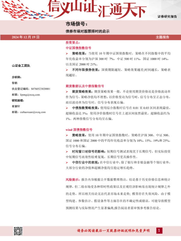 【山西证券】【20241219】市场信号:债券市场对股票择时的启示-29页 行业研究