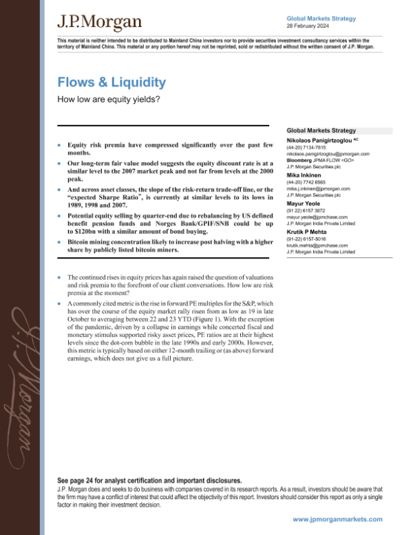【J.P. Morgan】【20240228】JPMorgan Market Stra-Flows Liquidity How low are equity yields-28页 行业研究