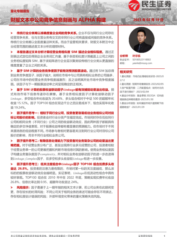 【民生证券】【20230219】量化专题报告:财报文本中公司竞争信息刻画与ALPHA构建-25页 行业研究