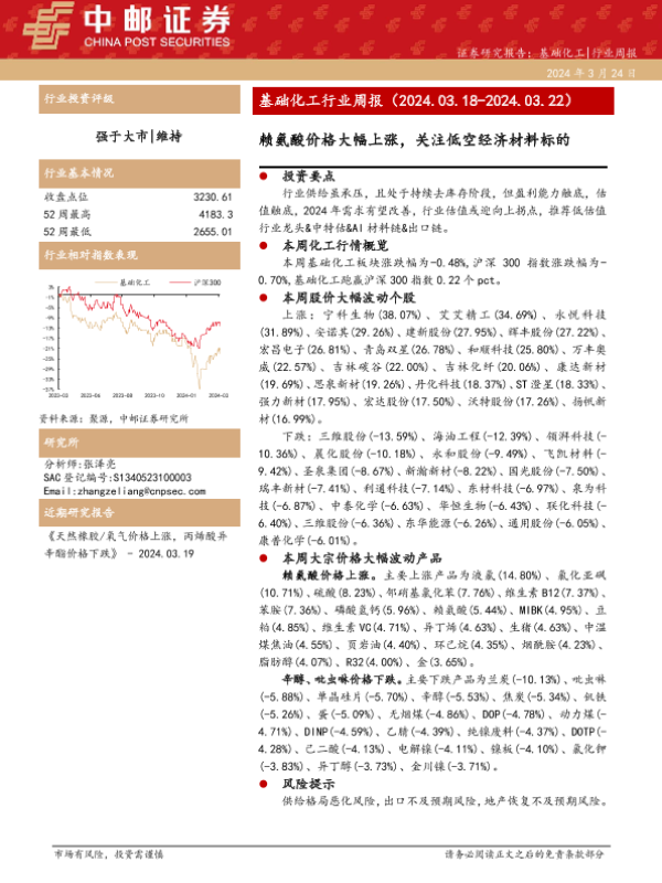 【中邮证券】【20240324】2023年04月01日更新-赖氨酸价格大幅上涨,关注低空经济材料标的-15页 行业研究
