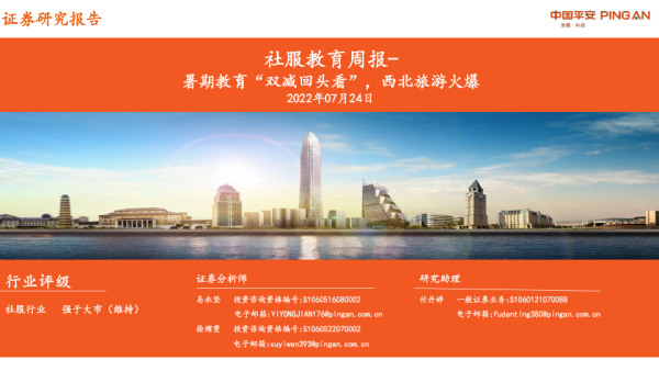 【平安证券】【20220724】社服教育周报:暑期教育“双减回头看”,西北旅游火爆-13页 行业研究