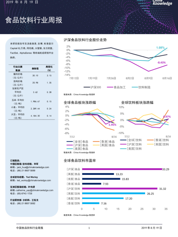 【China Knowledge】【20190819】20190819-China Knowledge-食品饮料行业周报-11页 行业研究