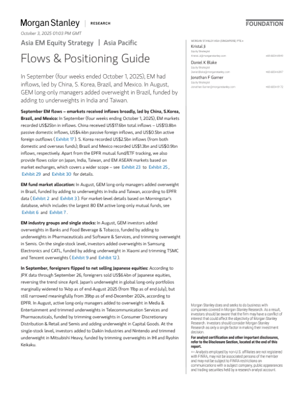 【Morgan Stanley】【202510】Asia EM Equity StrategyFlows & Positioning Guide-27页 证券期货研究报告