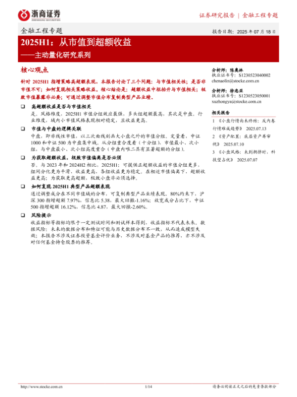 【浙商证券】【20250718】2025H1:从市值到超额收益——主动量化研究系列-14页 证券期货研究报告