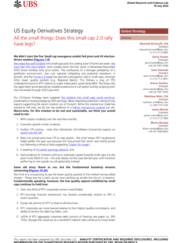 【UBS Securities LLC】【20240718】US Equity Derivatives Strategy _All the small things_ Does this small cap 2.0 rally have legs?-12页 行业研究