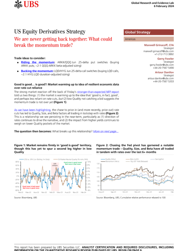 【UBS Securities LLC】【20240206】US Equity Derivatives Strategy We are never getting back together - What could break the momentum trade?-8页 行业研究