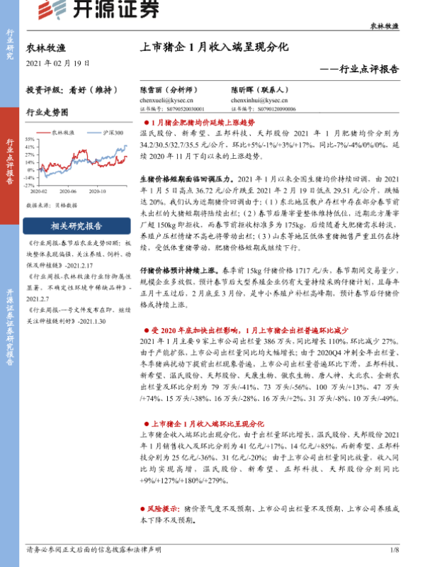 【开源证券】【20210219】上市猪企1月收入端呈现分化-8页 行业研究