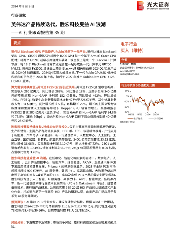 【光大证券】【20240809】AI行业跟踪报告第35期:英伟达产品持续迭代,胜宏科技受益AI浪潮-13页 行业研究
