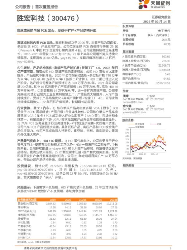 【天风证券】【20220214】20220214-天风证券-胜宏科技-300476.SZ-高速成长的内资PCB龙头,受益于扩产+产品结构升级-29页 行业研究