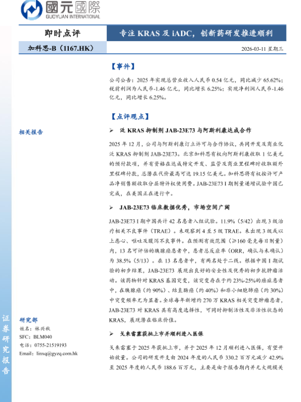 【国元国际】【202603】专注 KRAS及 iADC,创新药研发推进顺利-3页 证券期货研究报告