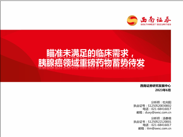 【西南证券】【202306】瞄准未满足的临床需求,胰腺癌领域重磅药物蓄势待发-41页 行业研究