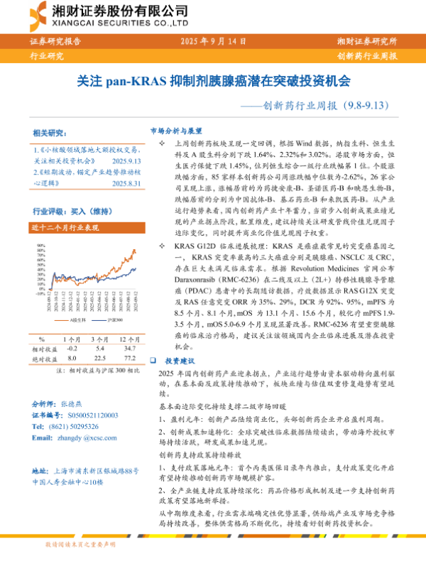 【湘财证券】【202509】关注pan-KRAS抑制剂胰腺癌潜在突破投资机会——创新药行业周报(9.8-9.13)-10页 证券期货研究报告