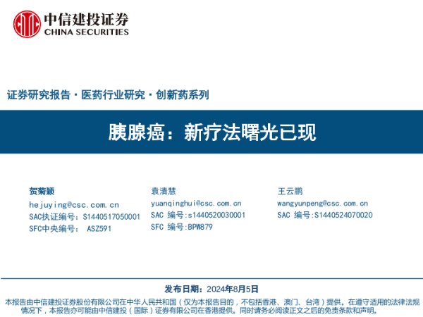 【中信建投证券】【20240805】医药行业研究·创新药系列-胰腺癌:新疗法曙光已现-51页 行业研究