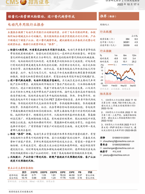 【海通证券】【20221017】电动汽车用胶行业报告:轻量化+热管理双轮驱动,进口替代趋势形成-29页 行业研究