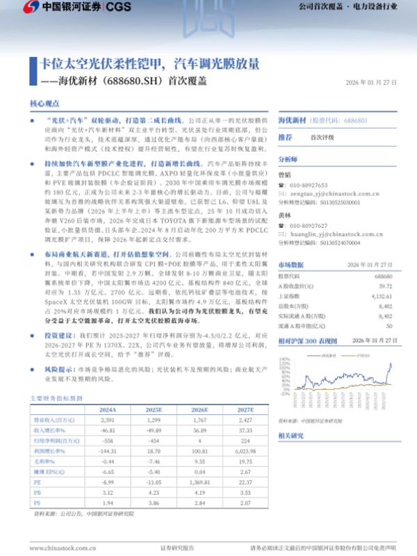 【银河证券】【202601】卡位太空光伏柔性铠甲,汽车调光膜放量-海优新材(688680.SH)首次覆盖-18页 证券期货研究报告